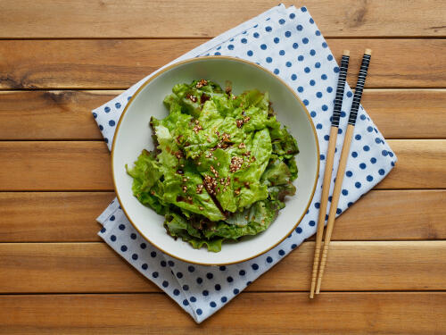 まずは、チョレギサラダに欠かせないサンチュの選び方から。レタスの仲間であるサンチュは、鮮度とみずみずしさが大切だ。一般的なレタスと比べ、葉の部分が球体になっていないサンチュは、葉先の色に注目してほしい。しっかりと濃い緑色をしていることが、美味しいサンチュの大前提である。色だけでなく、触り心地と香りもあわせてチェックしよう。みずみずしくパリッとした触り心地とさわやかな青々しい香りは、美味しいサンチュであることの証。サンチュそのものの味わいは、チョレギサラダの仕上がりに大きく影響する。チョレギサラダを作るときは、まずじっくりと使用するサンチュを選定しよう。