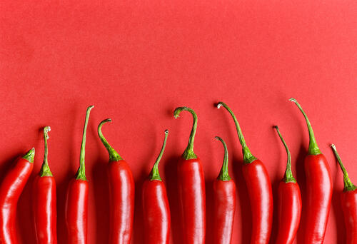 「唐辛子(とうがらし)」は、中南米が原産のナス科トウガラシ属の野菜で、数百から数千種といわれるほど非常にたくさんの品種がある。ピーマンやシシトウガラシ、パプリカなど辛みがほとんどない甘味種も含まれるが、一般的には辛いものを指すことが多い。
