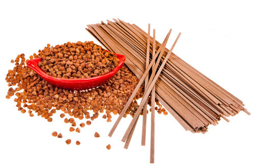また、蕎麦の実には殻を取り除いた抜き実(丸抜き)と黒い殻がついたままの玄蕎麦がある。殻ごと蕎麦の実を食べるほうが健康効果は期待できるようだが、殻がかたいため1時間くらい給水させてから茹でるという工程が必要である。