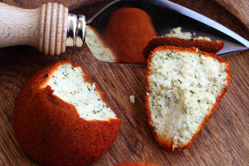 ブーレット・ダヴェンヌの表面が赤いのは、パプリカのパウダーや着色料によるもの。そして、熟成が上手くいかなかったものを原料とするため、若いチーズ特有の物足りなさがあり、それを補うためにハーブやスパイスがたっぷりと使われている。その独特の風味は人によって漢方薬のように感じるそうだ。