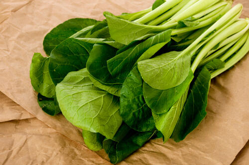 小松菜を購入する際には、葉が肉厚でみずみずしくピンとしていて、緑色が濃く鮮やかなものを選ぼう。また、茎や根がしっかりとしているものは生育がよいものである。ただ、葉の葉脈が発達し過ぎていると食感がよくないので、できるだけ葉がやわらかいものを選ぶとよいだろう。