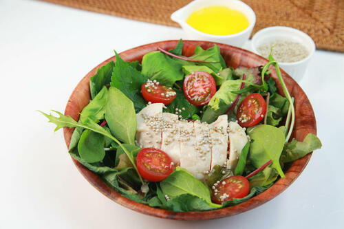 レタスにたんぱく質を加えれば手軽に栄養バランスが整った食事になる。メインディッシュにもなりそうなチキンソテーがのったレタスのサラダを紹介する。チキンサラダはボリュームのあるメニューだが、チキンは高たんぱくで糖質が低いので実はダイエッター向きだ。サラダはドレッシングの工夫でさらにカロリーオフできるので食事に気を使っている人におすすめである。