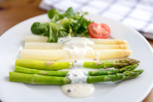 ホワイトアスパラガスがグリーンアスパラガスと異なる点は、太さや栽培方法。グリーンアスパラガスが緑色になるのは、太陽光を浴びて育てられることで葉緑素が作られるからだ。対してホワイトアスパラガスは、光をシャットアウトして作られるため白くなる。直射日光で育てられたグリーンアスパラガスはカロテンやビタミン、葉酸などの栄養をたっぷり含んでいるため栄養価が高い。疲労回復効果が期待できるアミノ酸のアスパラギン酸はアスパラガスに豊富に含まれていることから、その名が付けられたとされている。