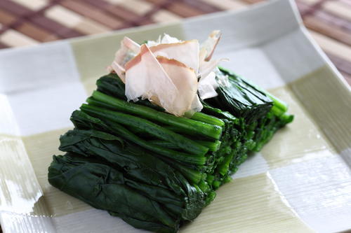 お浸しの基本ともいえる茹でる工程では、しっかり沸騰しているかどうかが重要だ。沸点を保ったお湯で茹でることで、酵素が一瞬で壊れ、化学変化が起きにくくなる。化学変化が起きなければ、栄養素が変化することなく守られるのだ。茹でる時間を極力短くするため、少量ずつ茹でるのも、栄養を逃さず色鮮やかなお浸しに仕上げるコツだ。