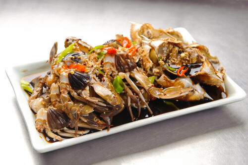 あとは、下処理の終わったカニを、ハサミで適当な大きさに切り分け、それらをソースに漬け込めば、これでひととおりの作業は終了する。カニのくさみが気になる場合は、ソースに漬け込む前に、レモン汁を回しかけることをポイントとして押さえておこう。