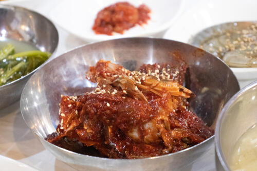 ケジャンは、生のまま食べるのが基本の食べ方になる。豪快に手づかみで、カニのうまみがたっぷりとしみ込んだ甲羅にしゃぶりつき、その絶妙な味わいを堪能しよう。