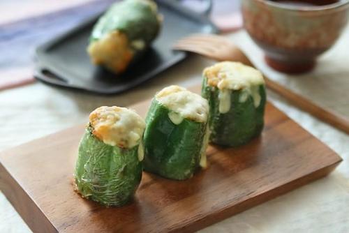8. チーズの香ばしさが魅力!ピーマンのごはん詰め