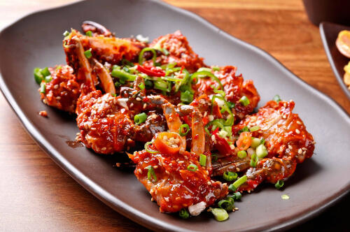 ケジャンにはコチュジャンや唐辛子などを合わせたソースで漬けられたヤンニョムケジャンと、醤油やニンニクで漬けられたカンジャンケジャン(カンケジャン)がある。いずれもワタリガニを漬けた料理のことだ。