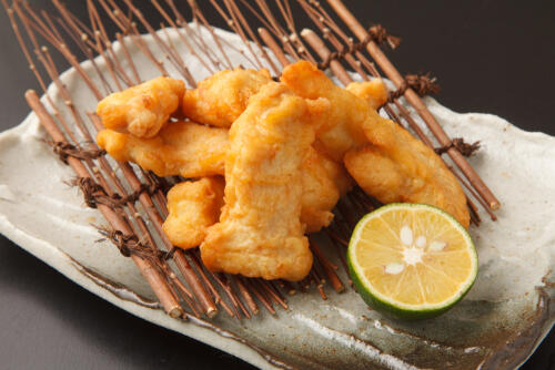 天ぷらは天つゆや塩などにつけて食べるが、とり天には天つゆではなくたれが添えられている。大分名産のかぼすなどで作られたポン酢や酢醤油など、あっさりとしたものが主流だ。