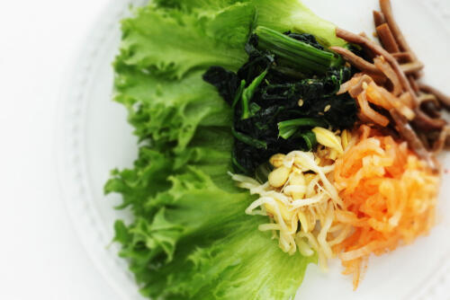 ナムルはごま油の入った和え物のことをいう。もやしやほうれん草、人参などが定番で、ビビンバにものせられている。好みの野菜を茹でて、塩とごま油で和えるだけで完成だ。冷蔵庫に余っている野菜があればぜひ作ってみてほしい。