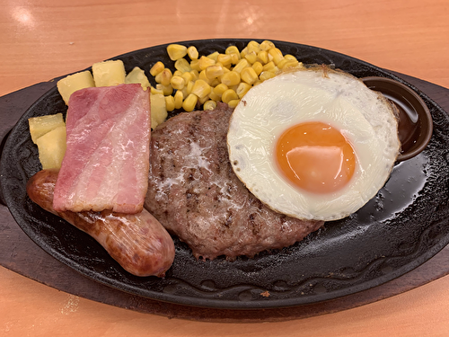 第3位も1位同様、鉄板系メニューが登場。ハンバーグと焼肉を組み合わせたボリューム満点の「焼肉とハンバーグの盛合せ」がランクインした。ビーフ100%ハンバーグと豚肉の焼肉のコンビネーションは、ごはんが止まらない味わいだ。。