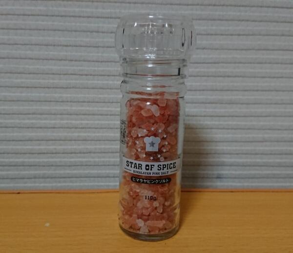 業務スーパーにはハーブソルトのほかに、ピンク色の岩塩も売られている。ハーブソルトと同じくミル付きで売られているので、そのまま挽いて使えるのが嬉しいポイント。岩塩の代表でもあるヒマラヤ岩塩をパキスタンから輸入していて、価格は110g入りで約160円。ミルが付いてこの価格はかなり安いといえるだろう。