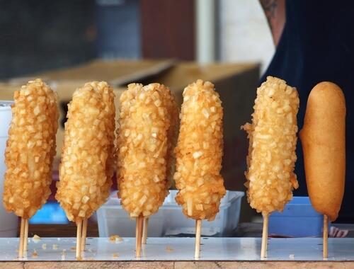 ハットグという屋台フードが、韓国で若者を中心に人気となっている。そもそもハットグとは、英語の「HOT DOG」を韓国読みしたものである。