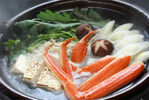 カニ鍋には、カニを中心としたさまざまな食材を入れる。食材選びは自由度が高いが、一応の目安を簡単に見てみよう。
