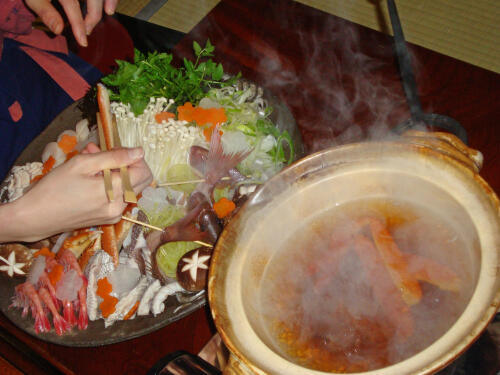 1. カニ鍋には、美味しさアップのため殻まで入れるのが特徴!