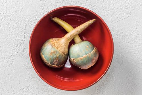 表面が青いことから名づけられた「青くわい」は、日本で最も多く出回っており、味も見ためもよいとされている品種だ。サファイヤブルーの皮やニョキッと伸びた芽が美しいため、祝いごとなどの高級食材として重宝されている。味わいの特徴は、加熱することで芋や栗のようなホクホクとした食感が生まれ、ほんのりとした苦みがあり、とても美味しい。