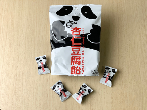 次に紹介するカルディでおすすめの杏仁豆腐は、カルディオリジナル 杏仁豆腐飴だ。何といってもおすすめのポイントは、パッケージのかわいさだ。飴が入っている大袋も個包装も飴を食べるキュートなパンダが描かれている。とろりと濃厚な杏仁ペーストがさわやかな杏仁豆腐味のキャンディで包まれており、食べてすぐに杏仁豆腐の味を感じられる。