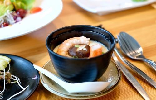 茶碗蒸しのルーツは、江戸時代に交易で長崎を訪れていた唐人(中国人)が伝えた、人をもてなす料理である卓袱料理(しっぽくりょうり)だといわれている。卵と出汁、具材を混ぜて蒸すだけと工程だけをみると簡単だが、それぞれの段階で美味しく作るためのポイントが存在する。どんな具材を入れても合うイメージだが、まいたけは入れると卵が固まらなくなってしまうので注意が必要だ。