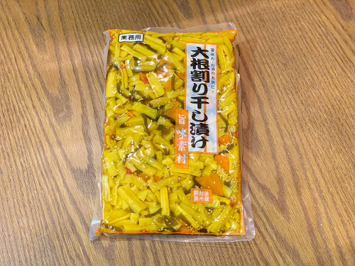 大根割干し漬けは、大根を細長く切って干し、漬けたシンプルな漬物。漬物の定番であるたくあんのような味わいで、カリカリっとした食感のよさが特徴だ。1kg入って約370円なのでほかの漬物シリーズよりもやや高いが、おかずとしてもつまみとしても優秀な一品だ。