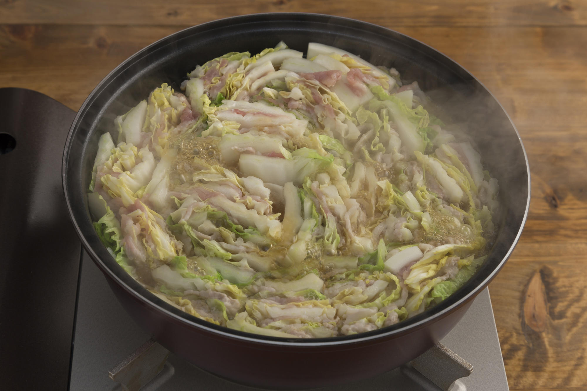 単純に、ミルフィーユ鍋の残りに野菜などを足して煮込めば、具だくさんスープができあがる。食材によっては火を通し過ぎないほうがよいが、煮込み加減を確認しやすいのが嬉しい。また、たとえばスパイスを加えるなど、ミルフィーユ鍋とは少し味付けを変えて楽しむことができる。エスニックなスパイスを入れて、よりさっぱりと食べるのもよいかもしれない。