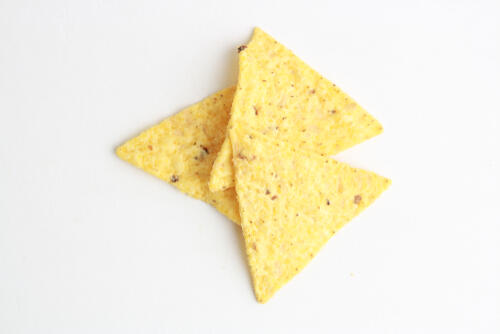 トルティーヤチップスの作り方は極めてシンプルだ。とうもろこし粉に水を加えて作った生地をのし棒で広げて、直径15cmほどの容器を使用して丸く切り取る。縁に切り取った生地をさらに8等分すれば、トルティーヤチップスの特徴を有する三角形となる。あとは揚げてチップス状にすれば完成だ。揚げるのが面倒な場合は、フライパンに油を入れてトーストするのもよいだろう。生地を薄く伸ばすほど、カリッとした食感を楽しめる。
