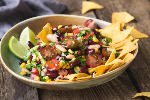 加熱せずとも、前菜のようにナチョスを楽しむ方法もある。トルティーヤチップスにトマトやピーマンのサルサ、ワカモレを軽くつけて食べれば、前菜にもなるフィンガーフードとなる。