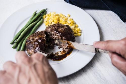 牛肉は焼くと硬くなる性質があるため、豚肉を加えてハンバーグを作ることで、柔らかい仕上がりになる。黄金比といわれる比率は、牛7:豚3。食感がよく旨みも引き立てられる割合といわれている。より柔らかい食感が好みなら、牛6:豚4の割合がいいだろう。