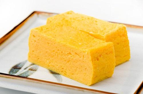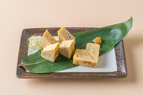 - 食べやすい大きさにカットして器に盛り付ければ、めんつゆで作るだし巻き卵の完成だ