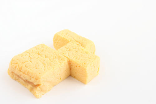 仕上がりの形は耐熱容器の形に沿うため、ブロック状になることが多いだろう。そのままでも形はきれいなはずだが、より見ためにこだわりたい人もいるかもしれない。たとえば熱いうちにす巻きでくるんで押さえておけば、表面に凹凸を付けたうえで、丸い形に仕上げることもできる。ほかの型などを使えば、さらに違う形にも仕上げられるだろう。興味のある人は試してみてはどうだろうか。