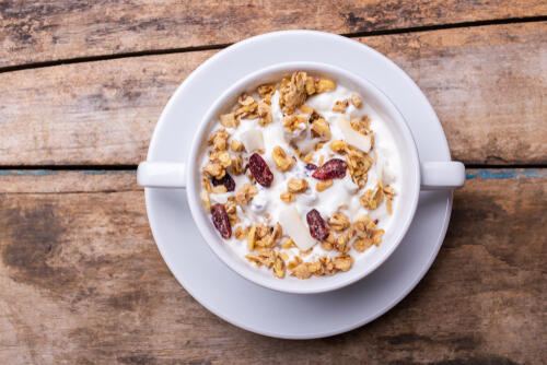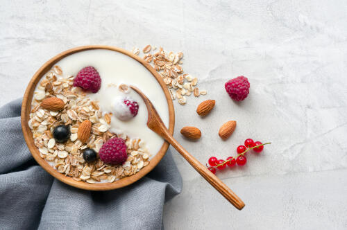ミューズリーには、オーツ麦などの穀物をメインに、ドライフルーツやナッツなどが加えられている。