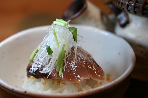 かつおのたたき丼は白いごはんで作らなければならないわけではない。さっぱりと食べたいからと酢飯で作るという人も多い。錦糸卵をまわりに飾れば寿司のようになる。また、ごはんをそばに変えることもできる。かつおのたたきとそばは一見合わない気もするが、案外美味しいのだ。