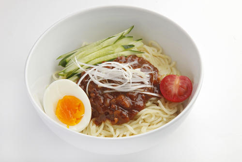 中華麺を水に浸し、引き締める。その上に、きゅうり・トマトなどの野菜をのせ、最後に作った肉味噌をのせれば完成だ。マイルドに食したいという人は、卵をのせて食べるのもよいだろう。