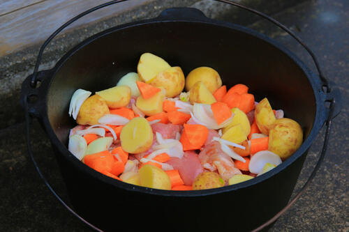ダッチオーブンは本体と蓋がしっかりと密閉されているため、圧力鍋のように使用できる。少しの熱源でしっかりと熱が加わるので、アウトドアであっても本格的なシチューやポトフがあっという間に完成する。