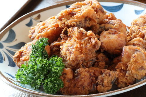 タレに漬け込んで揚げるからあげは、タレに入れる調味料でジューシーさが増す。しょうが、にんにくは忘れずに入れよう。さらにマヨネーズを入れると肉が柔らかくなる。使う粉は、小麦粉をまぶしたあと片栗粉をつけて二重にすると旨みを閉じ込めサクッとした食感が楽しめる。選ぶ鶏肉の部位ももも肉、むね肉、骨付きもも肉とで味わいが違ってくる。