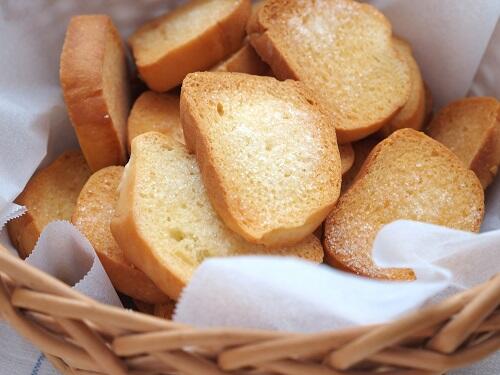 ラスクは市販品も数多く販売されており、その材料やレシピもさまざまだ。一般的には輪切りにしたフランスパンで作られているものが多いため、今回はそれを前提にカロリーを紹介する。