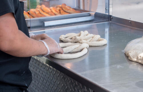 プレッツェルの作り方は、パン作りの基本をおさえておけばそこまで難しくない。下ごしらえのポイントは、よくこねてしっかり発酵させること。発酵させなければ、スナック菓子のようなカリカリのプレッツェルになる。外側はカリッと中はもちっとしたプレッツェルを作りたい場合は、下ごしらえを丁寧に行いたい。
