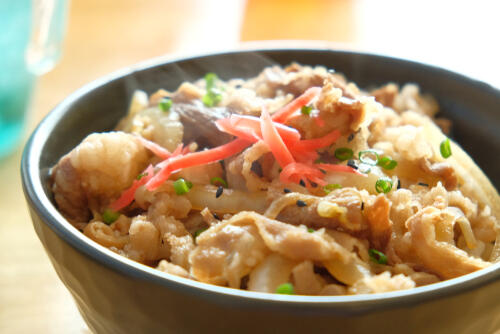 ごはんに豚肉と白菜キムチ、半熟玉子、刻みのり、青ネギ、細切りごぼうやにんじんとさまざまな具材がたっぷりのった丼ぶりで、甘辛ダレがやみつきになると評判だ。好みですべての具材を混ぜて味わったり、少しずつ具材を混ぜてみたりと自分好みの食べ方ができる丼ぶりになっている。1つの丼ぶりでさまざまな具材を一度に味わえるおすすめ丼ぶりだ。