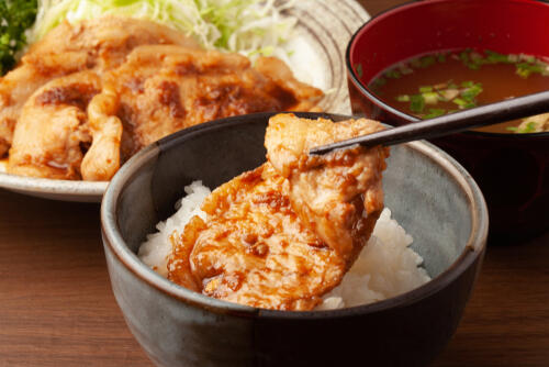 定食の定番、生姜焼きも松屋で味わえる。豚肩ロースと玉ねぎを特製の生姜タレで焼いており、ごはんがすすむ味付けになっている。ごはんと味噌汁とサラダがついているので、バランスのとれた定食といえるだろう。マヨネーズもついており、好みで生姜焼きにマヨネーズをつけて食べるのもおすすめだ。