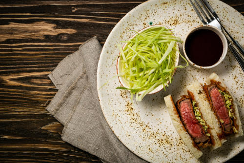 牛カツは、ミディアムレアからレアに仕上げたものが美味しいとされる。そんな牛カツ用の牛肉はステーキ肉がおすすめ。冷蔵保存する場合は、ドリップをふき取りキッチンペーパーで包んでラップでカバーしよう。冷凍保存する場合は、塩をふりかけ水分を出しておく必要がある。その後水分をふき取りラップに包んで、ジップ付き保存袋に入れて急速冷凍しよう。解凍方法は、チルド室に入れてゆっくり解凍するのがおすすめ。肉に均一に火が通るように、解凍後も30分ほど室温に戻しておくのがポイントである。