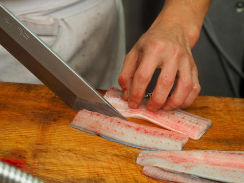 うなぎの蒲焼きについては、関西と関東で作り方に違いがある。関東風では、ほかの魚とは異なり背開きにするのが基本。串を打ち、一旦焼いてから蒸しあげて、さらにタレをつけて焼いていく。対して関西風は普通の魚同様、腹開きが基本。さばいたうなぎをそのまま炭で焼き、タレをつけていく。