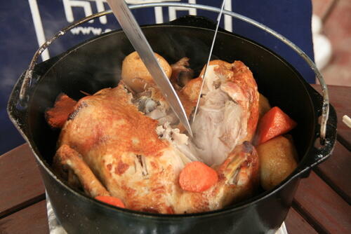 また、重い蓋がついているおかげで炭を上ののせることもでき、圧力鍋のような機能も発揮する。まさに万能な鍋といえるだろう。