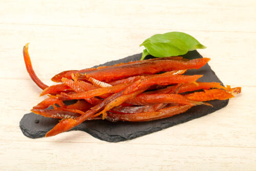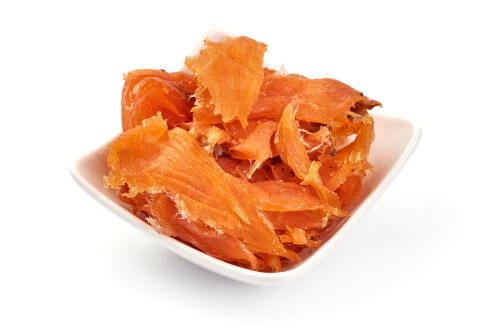 鮭とばといえばスティック状のものをイメージする人が多いかもしれないが、違う切り方の鮭とばもある。