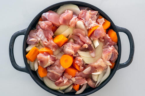 無水カレーは、野菜の水分がなければ作ることができない。そのため、水分を多く含む野菜を選ぶのはマストである。やはりおすすめはトマトと玉ねぎだ。カレールウ1箱に対してトマトも玉ねぎも3~4個と豪快に使う。ちなみにトマトの代わりにトマト缶を使ってもよい。あとは好みの野菜や肉を加える。野菜の甘みが強いため、いつものルウよりも一段階辛めのものを選ぶとちょうどよい。