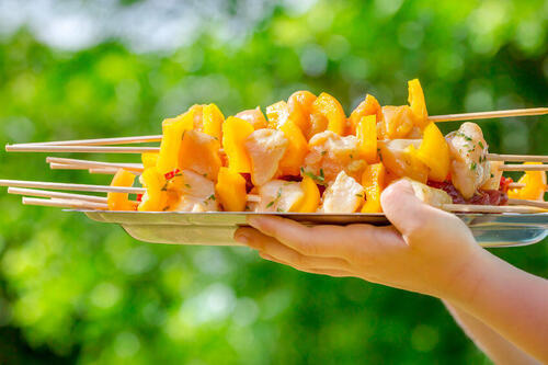 バーベキューには、焼くと美味しい食材が適している。野菜なら、しいたけ・アスパラガス・なす・玉ねぎ・とうもろこしなど。火が通りにくい野菜は、ホイル焼きにするとよい。食材を網のうえで丸焼きにする場合、そのまま焼いてしまうと水分が蒸発して、美味しさを損ねてしまう。そこでおすすめなのが、野菜の表面にオリーブオイルを塗る方法である。オイルが水分を閉じ込めるので、ジューシーに焼き上げることができるのだ。