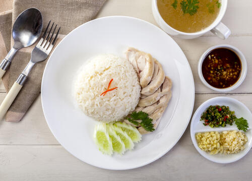 蒸し鶏を使ったアレンジ料理の定番といえば、カオマンガイだろう。茹でたり蒸したりした鶏肉をごはんにのせたタイの料理で、独特の香辛料の味が特徴的だ。香辛料の味が苦手な人は、日本風にアレンジして作ってもよいだろう。ちなみに、カオマンガイは炊飯器でごはんと鶏肉を一緒に調理することもできる。
