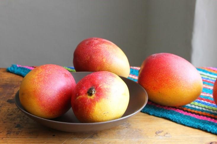 完熟したマンゴーは、果肉は指先で押すと少し食い込むくらいの柔らかさになり、甘い香りを放っている。外国産の場合は輸入日数を考慮し、熟しきる前の状態で収穫しているので、購入時にまだ硬さを感じたら常温での追熟が必要。