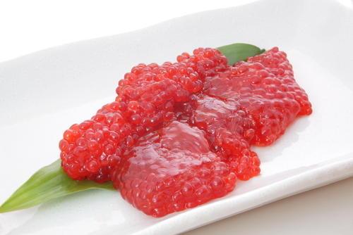 まず、よりわかりやすいいくらからはじめよう。いくらはロシア語のikraを語源としている。ロシア語では、魚卵全般を指す言葉である。それが日本では、鮭やマスの卵を塩漬けにした食品を指すようになった。卵巣膜から成熟した卵を1粒ずつ切り離した状態のものがいくらである。購入後、そのまま食べられる状態で販売されていることが大半である。