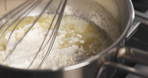 ホワイトソースは、その名の通り、白いソース。この白さをキープするには、焦げも禁物。少しでも焦げてしまうと茶色のソースになってしまう。焦がさないためには、弱火が基本。急いでいるからといって、火加減を強めるとみるみる茶色になってしまうので、注意したい。