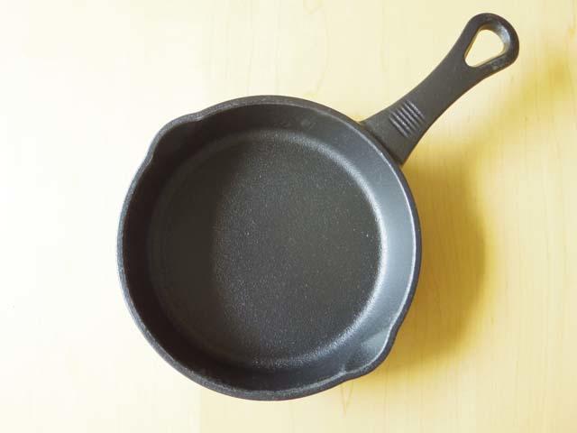 スキレットは鉄製のフライパンの一種。普通のフライパンに比べてずっしりと重量感があるもののことを、日本ではスキレットと呼んでいる。全体的に厚みがあるので、フライパンよりも熱が均一に素材に伝わり、素材の味をじっくりと引き出すことができるのが特徴だ。サイズは、小さいものなら15㎝位からある。格安なものだと、ワンコイン程度で購入できる。