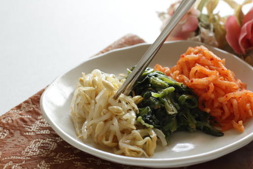 豆もやしのなかでも、ナムルはもっとも知名度の高いレシピと言えるだろう。お店のような味に仕上げるポイントは、油と手にある。まずは茹でてからしっかりと水気を切った豆もやしに、ごま油をなじませる。風味はもちろん、もやしを油でコーティングして、水っぽくならないようにするために行う作業だ。ニンニクや塩、醤油、砂糖などで調味していくのだが、そのすべての工程は手で行うといい。しっかりと揉みこむことで味のなじみがよくなり、美味しくなる。すりごまを入れるとより濃厚に。
